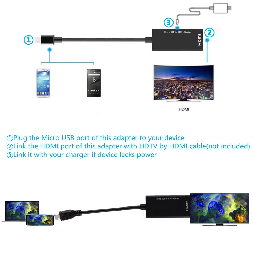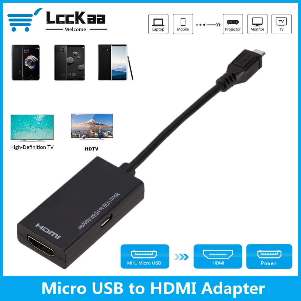 Используйте этот адаптер micro USB-HDMI для подключения устройств Micro USB к телевизору HD.