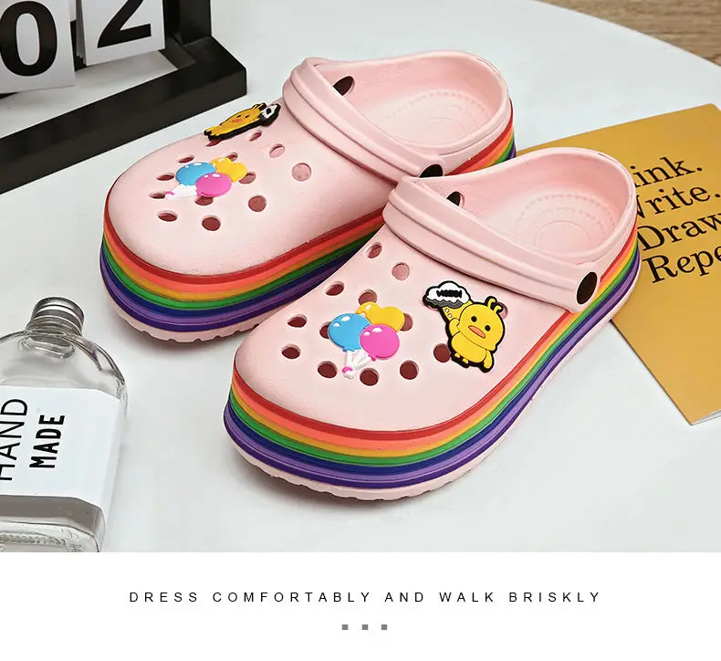 Летние модные женские Мультяшные шлепанцы Нескользящие пляжные сандалии домашние милые женские сабо сандалии на платформе фиолетовые садовые туфли из ЭВА