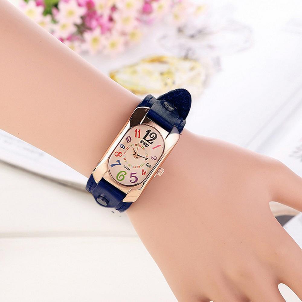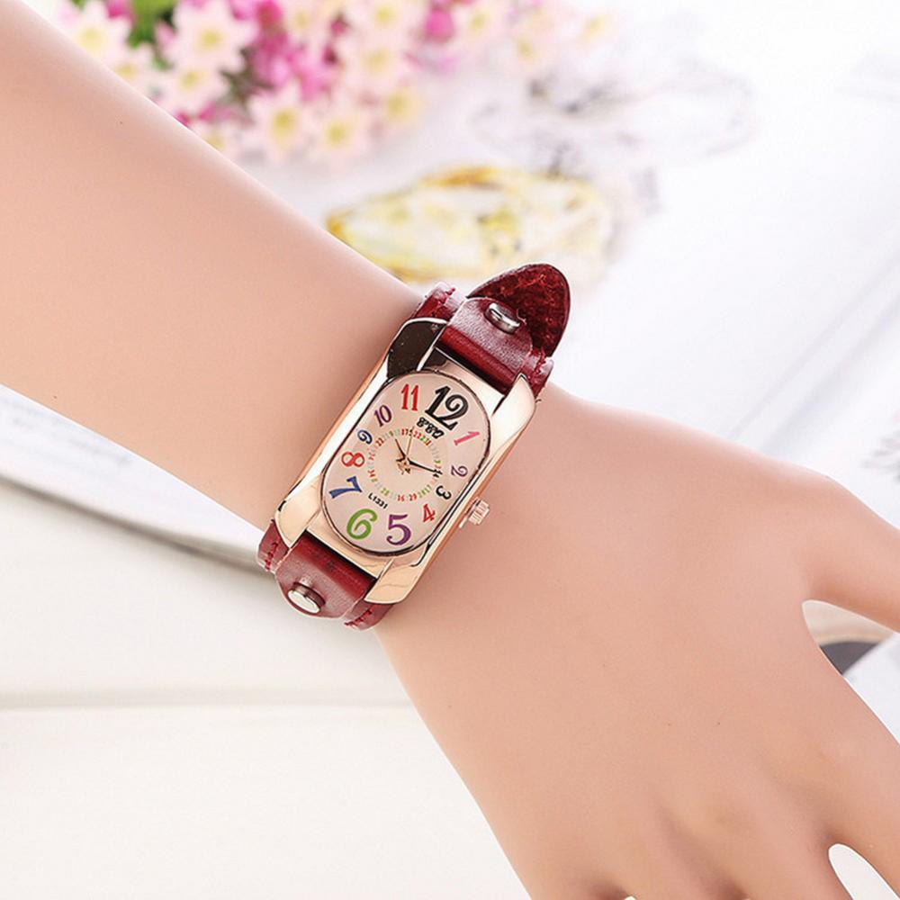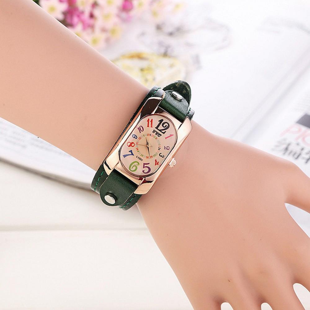 Цветные цифровые прямоугольные часы из коровьей кожи с ремешком, женские часы-браслет, женские кварцевые часы из бронзы, студенческие часы для отдыха