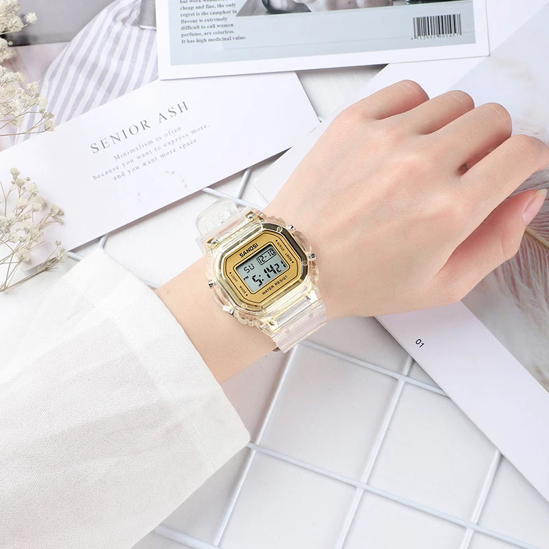 Модные мужские и женские часы, золотые повседневные Прозрачные Цифровые спортивные часы, подарочные часы для влюбленных, детские наручные часы, женские часы