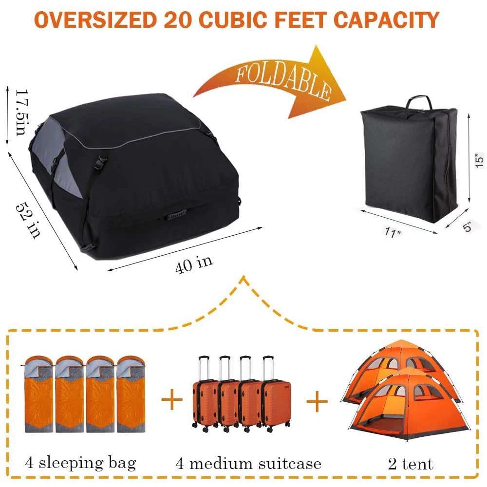 • 【Крупногабаритные 20 кубических футов 】массивные 20 кубических футов (L40 "x W52" x H17.5 ") пространства может легко держать весь багаж семьи 5-6. Большинство других грузовых перевозчиков на крыше маленькие, и нет достаточно места для размещения всего, что вам нужно.