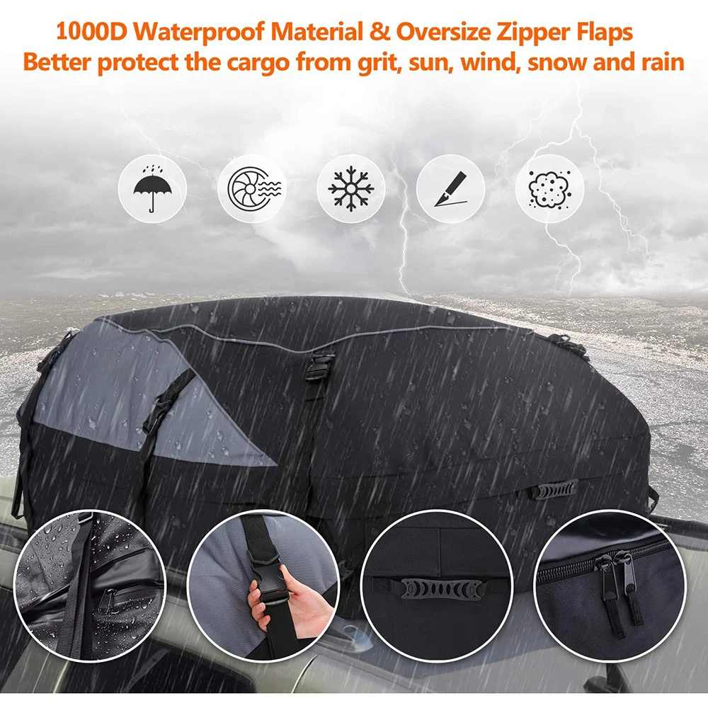 • 【Модернизированная Водонепроницаемая молния, в то время как другие сумки-переноски на крыше пропускают воду через обычную молнию, мы модернизировали ее до водонепроницаемой молнии, которая помогает сохранить ваши предметы сухими.