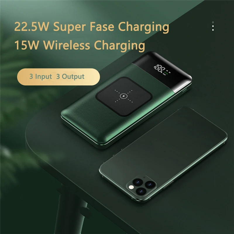 Беспроводное зарядное устройство Qi, внешний аккумулятор 20000 мАч для iPhone 12, Samsung S20, Powerbank 22,5 Вт, быстрая зарядка внешнего аккумулятора