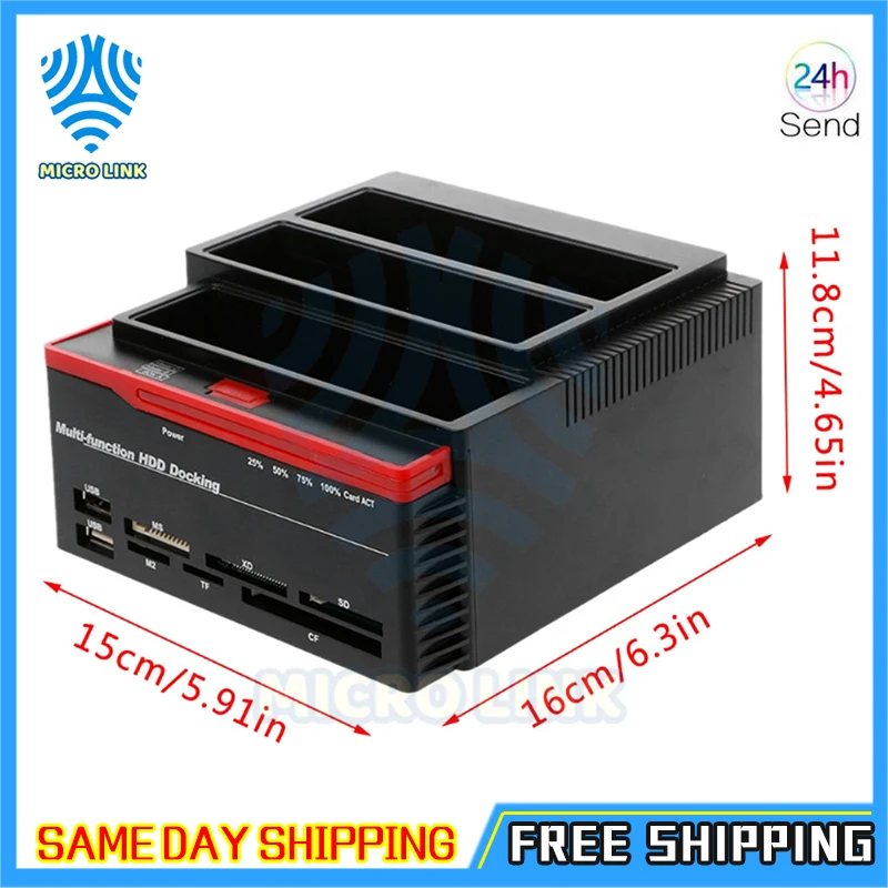 Эта универсальная База жесткого диска может одновременно считывать 2 жестких диска s (6 ТБ * 2) и два интерфейса расширенного концентратора USB2.0.