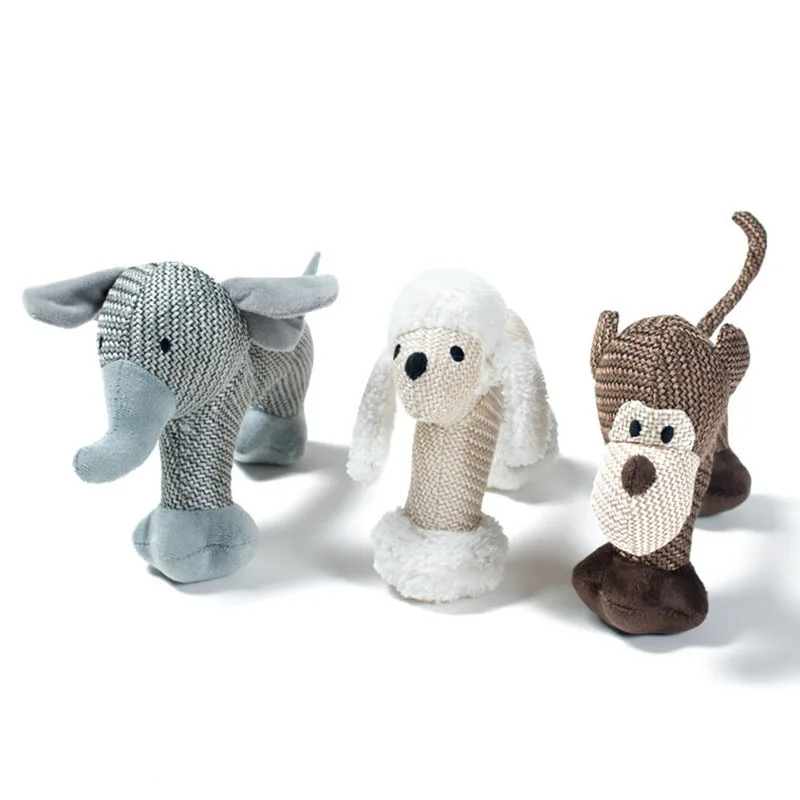 【Безопасный материал из натурального льна 】: пищащая упаковка игрушек для собак изготовлена из натурального льна и мягкого плюша, полипропиленовая хлопковая набивка, которая безопасна для ваших собак, льняная ткань делает игрушку более прочной и устойчивой к укусам.