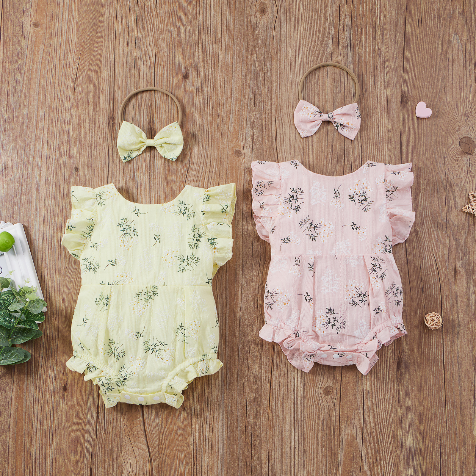 Модный комбинезон с рукавами-крылышками и повязка на голову для маленьких девочек