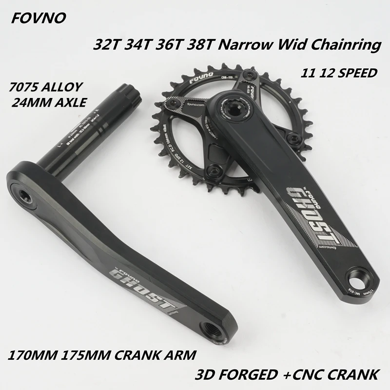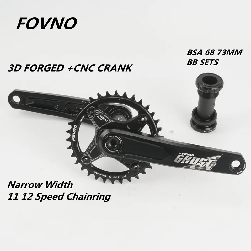 FOVNO Кривошипные наборы, сплав 7075 3D FORGE + CNC 170-175 мм кривошипная рукоятка, узкая ширина 32T 34T 36T 38T 11 12 скоростной цепной круг, 68 мм 73 мм BSA BB наборы