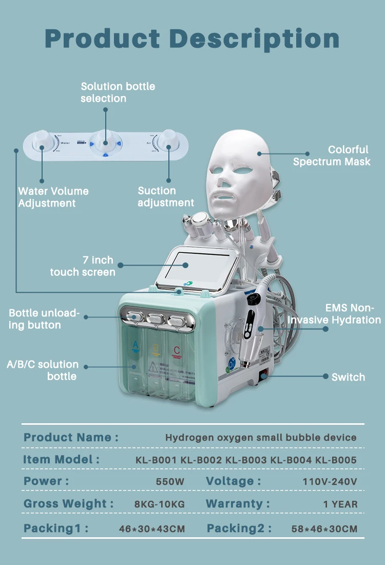 5. Водородная кислородная очистка: Очищение лица, пилинг, очищение пор.