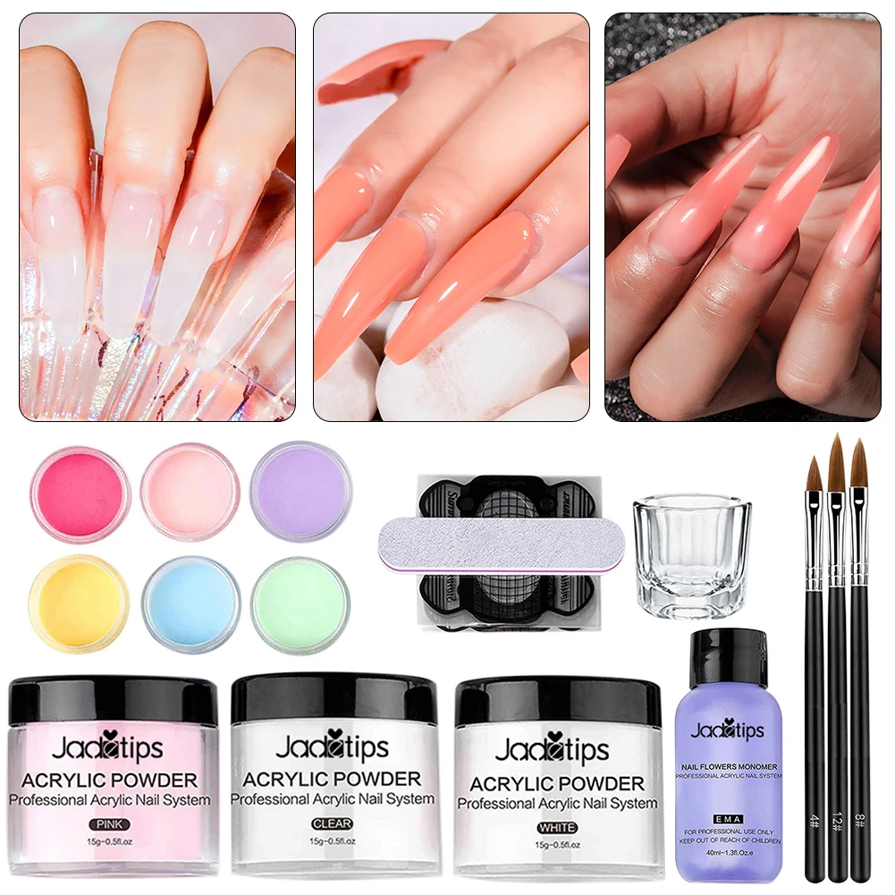 *4. Package includes acrylic liquid, acrylic powder, nail brush, glass cup, nail file and stickers to DIY nail arts.
