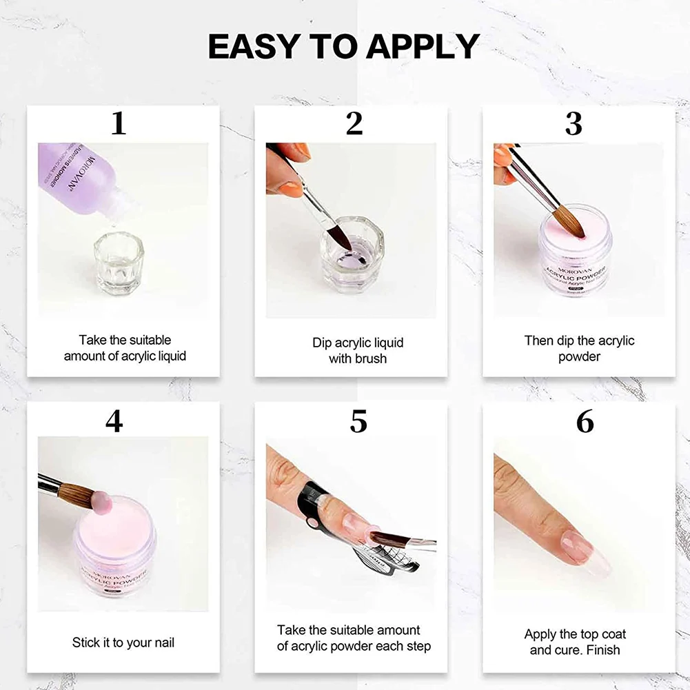 *2. No need a nail lamp to cure. Easy to use, combine the acrylic powder with liquid to apply on the nails.