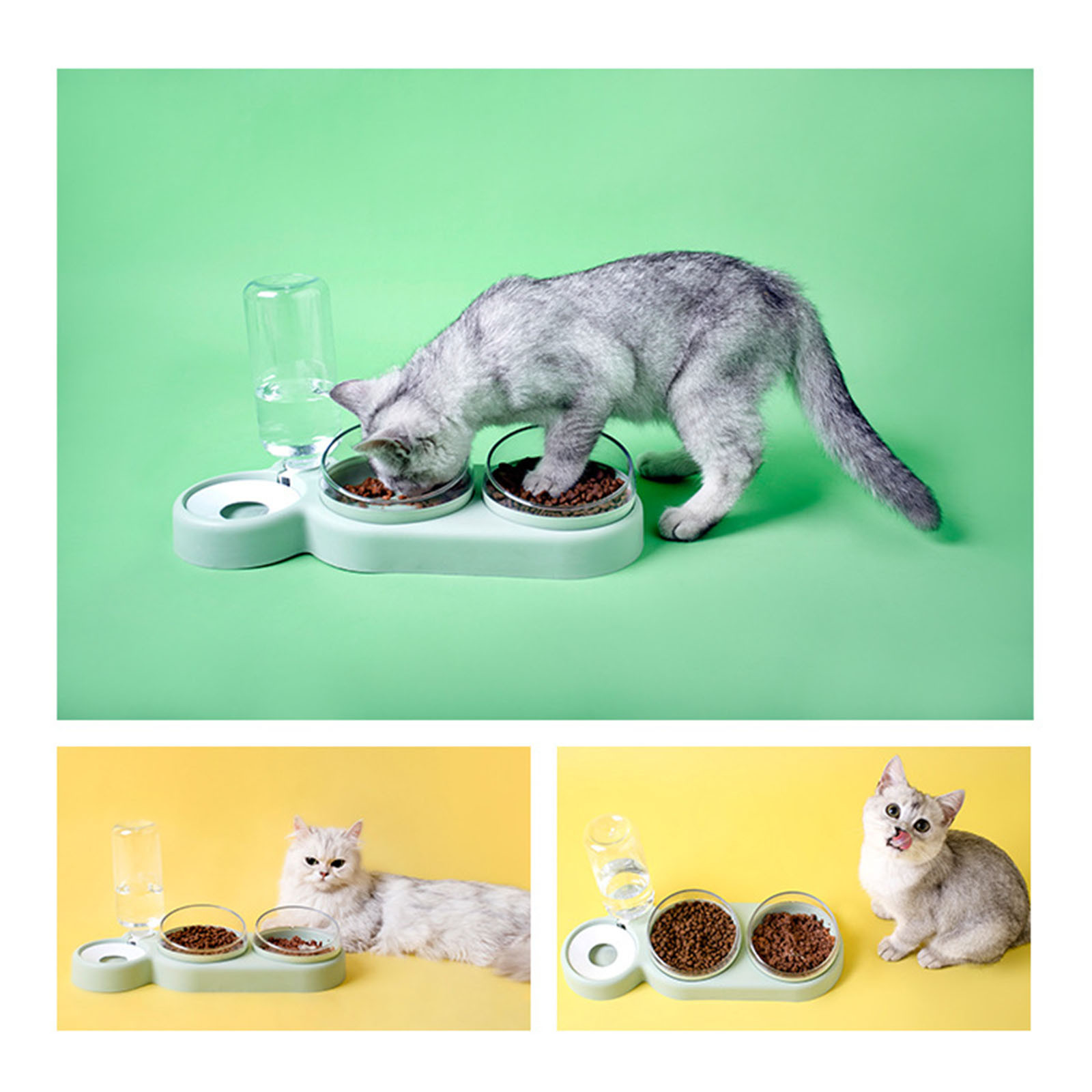 Набор кошачьих мисок с 3 стаканами, двойная миска для влажного и сухого корма с бутылкой для воды