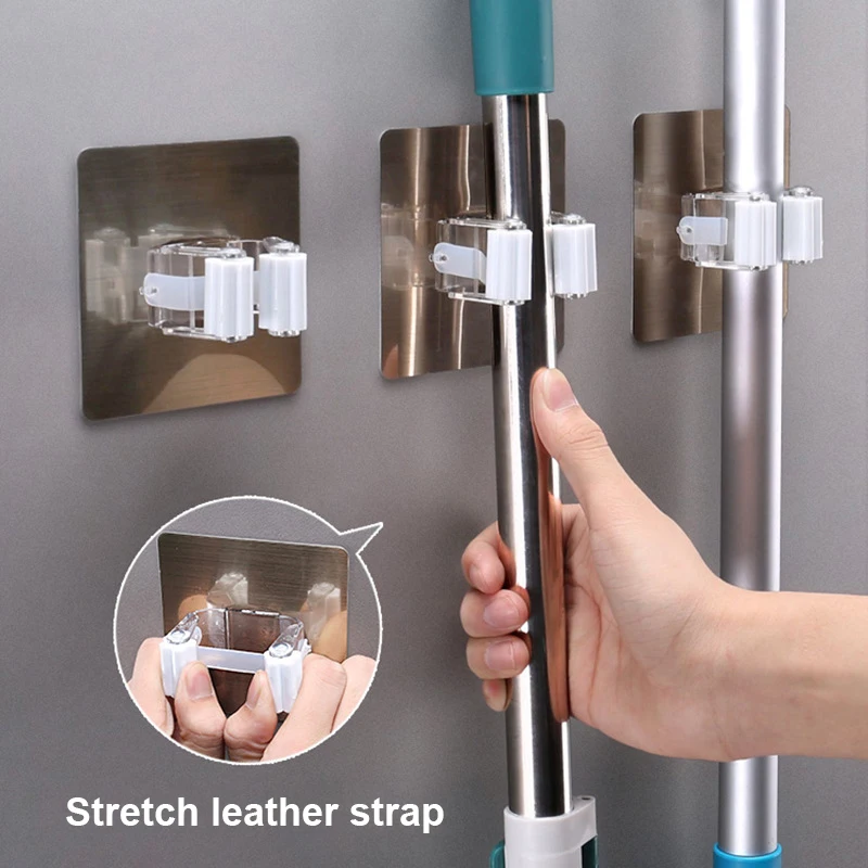 【Отличная адгезион】клейкая область держателя швабры составляет 8 см * 8 см, несущая способность сильна, хорошо повесить метлу и швабру, не упадут.