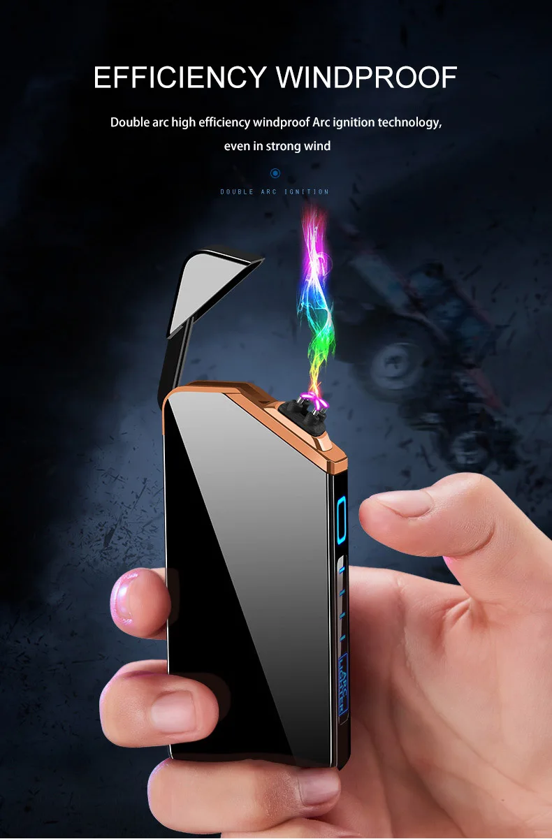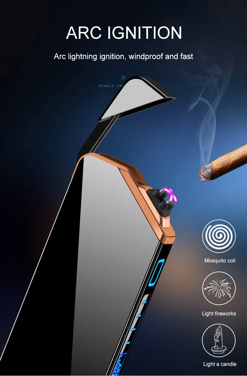 Электрическая двухдуговая Зажигалка USB перезаряжаемая плазменная Зажигалка для сигарет ветрозащитная беспламенная Зажигалка для курения светодиодный индикатор питания гаджеты