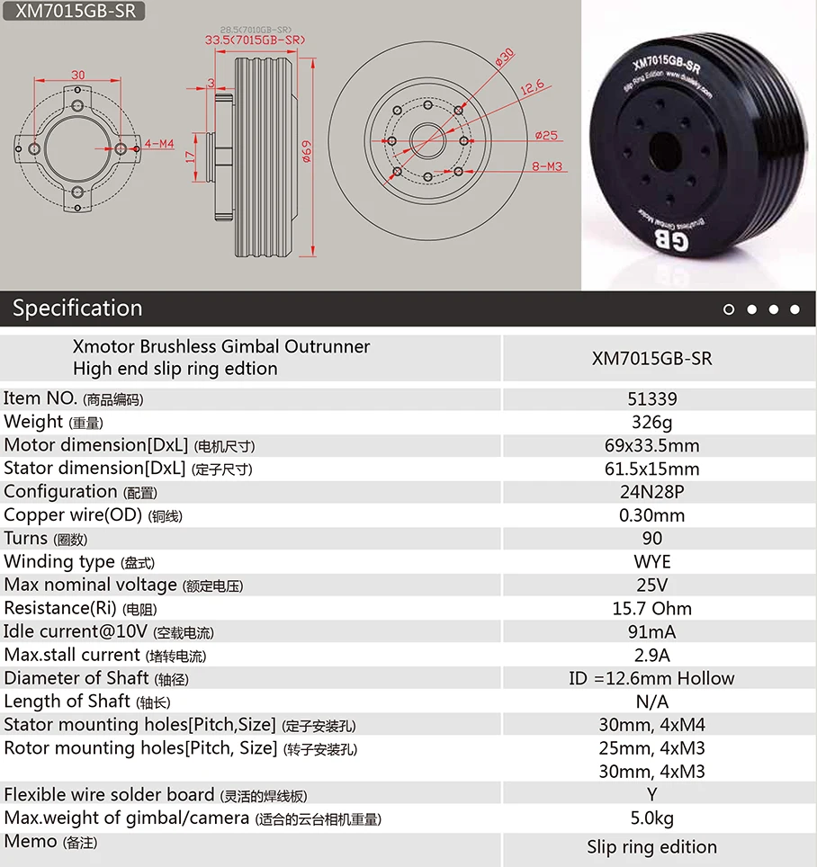 Двойной Sky Yuntai мотор XM7010GB-SR 7015GB-SR бесщеточный мотор