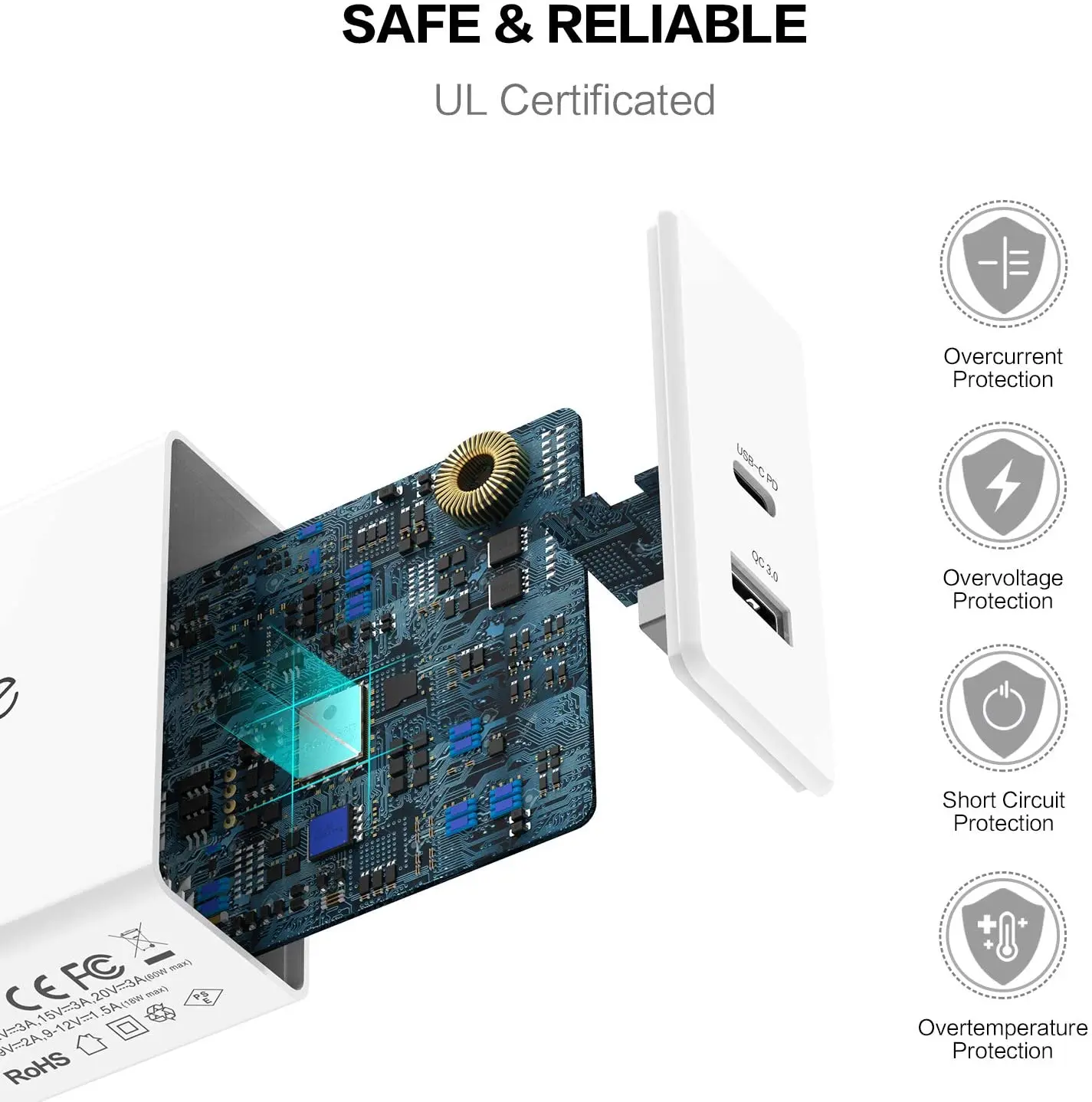 Безопасный и надежный:Благодаря встроенному интеллектуальному чипу Зарядное устройство USB C автоматически адаптируется к текущим потребностям вашего устройства. Защита от короткого замыкания, перенапряжения и перегрузки по току эффективно защищает ваши устройства от повреждений и обеспечивает безопасную ночную зарядку.