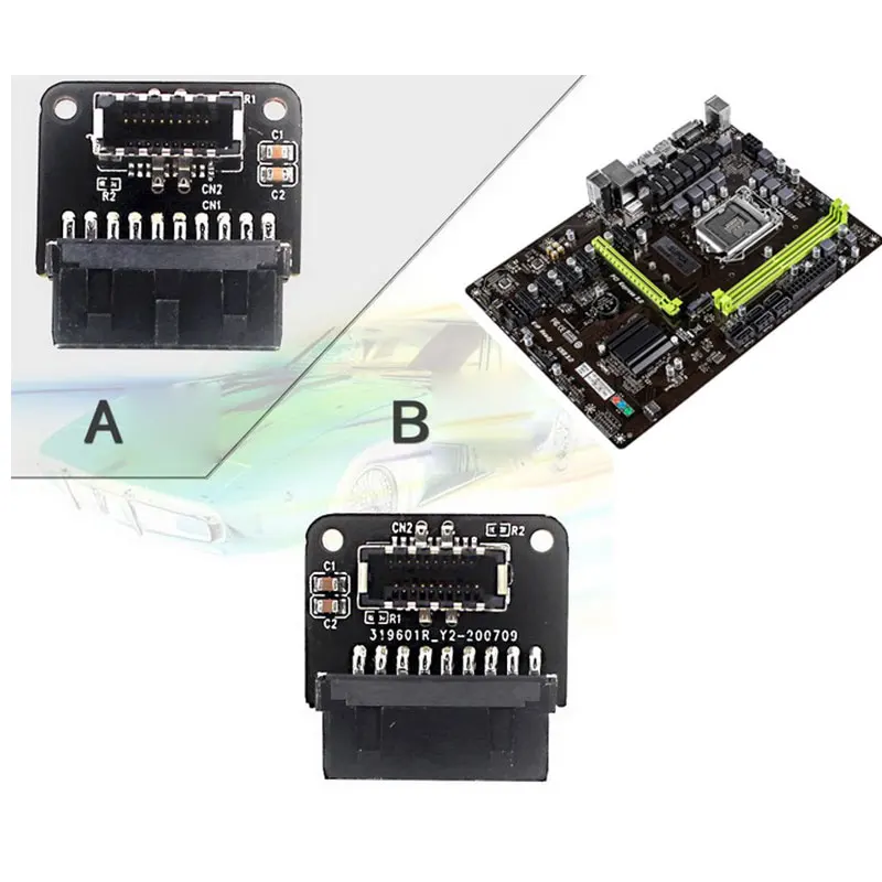 Адаптер представляет собой преобразователь для преобразования доступного разъема USB 3,0 материнской платы в разъем USB 3,1 типа e.