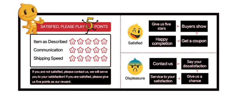 3. Пожалуйста, свяжитесь с нами, прежде чем оставить отрицательный или нейтральный отзывы. Мы будем работать с вами, чтобы решить любые проблемы.