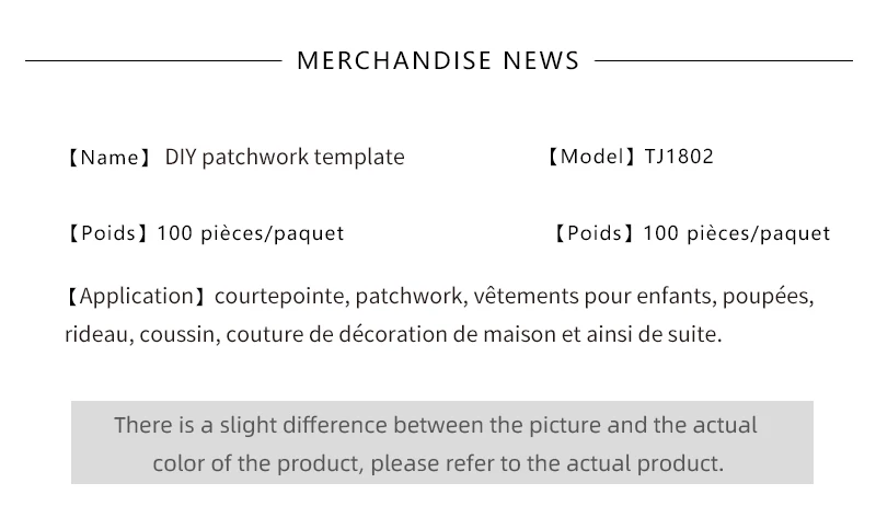 Бренд: JH Название продукта: стеганые Шаблоны Номер: TJ1802 Количество: 100 листов Рекомендуемое использование: Эти шаблоны для стеганого шитья, шитья, ремесла, линейка для лоскутного шитья и лоскутного шитья. Подходит для любых личных DIY или профессиональных проектов.