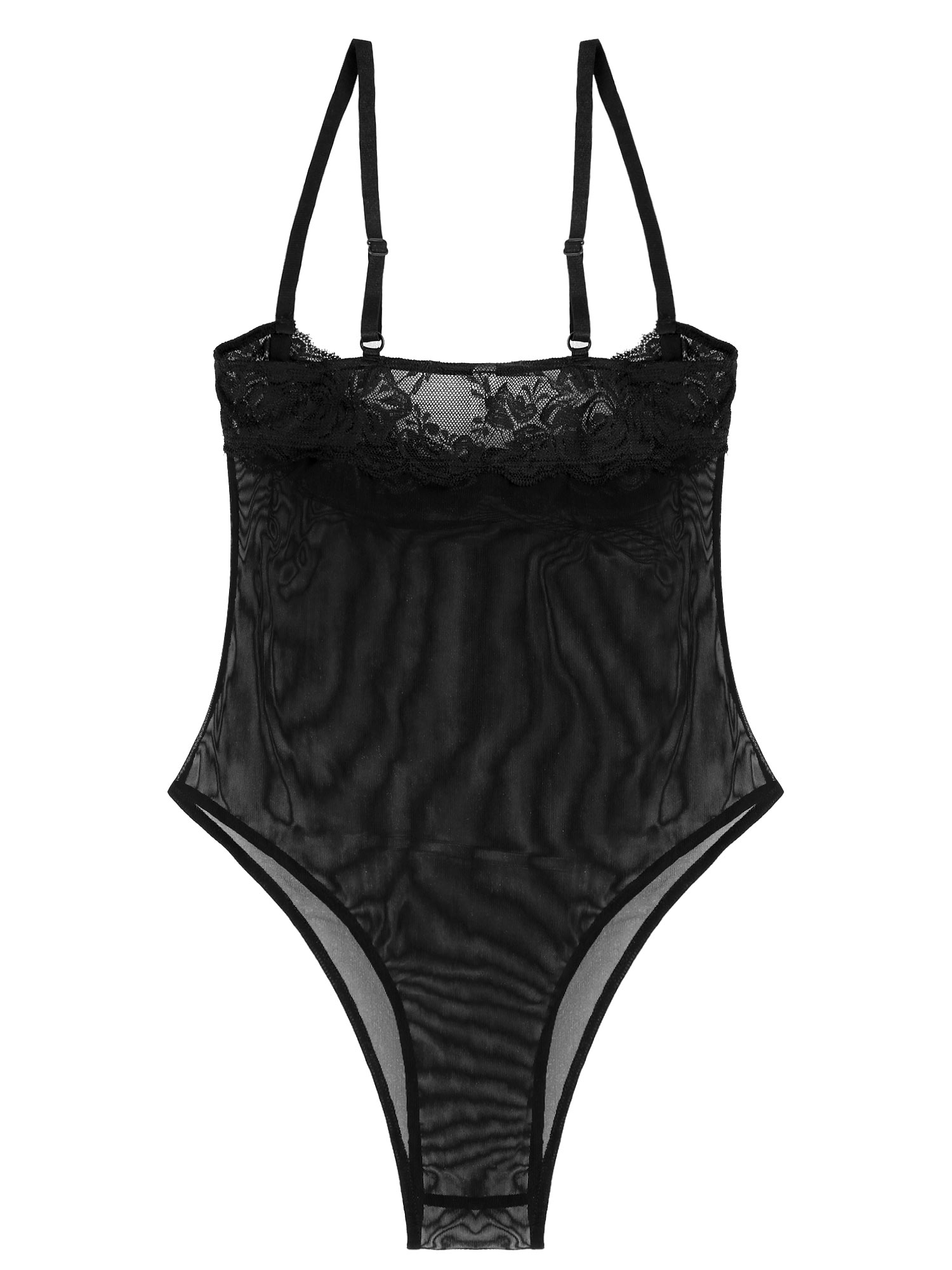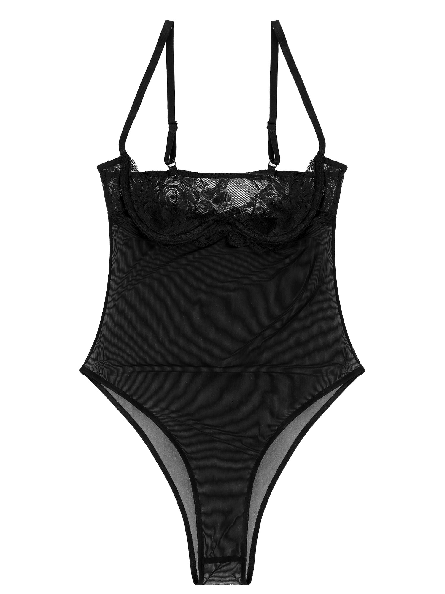 Регулируемый ремешок; Кружевной комбинезон с цветочным рисунком и вставками; Прозрачный сетчатый комбинезон.