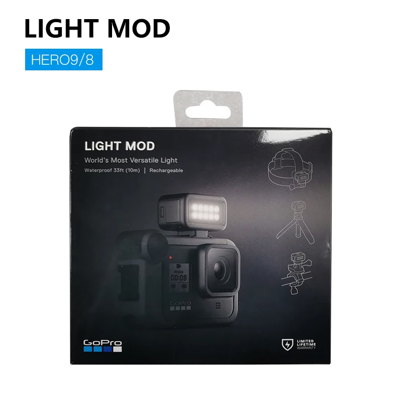 Как и HERO8/HERO9 Black, модель GoPro Light Mod имеет Водонепроницаемость до 33 дюймов. Он предназначен для крепления к отдельно продаваемому GoPro медиа моду, который является внешней рамкой с креплениями для обуви и другими функциями. Отдельные медиа-моды доступны для HERO8 и HERO9.