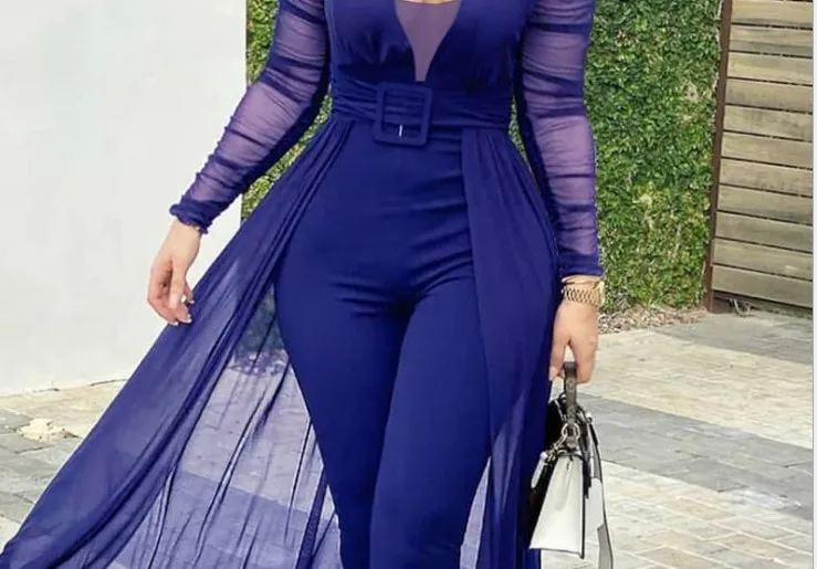 Женский комбинезон с длинным рукавом, однотонный Облегающий комбинезон с поясом, вечерние комбинезоны