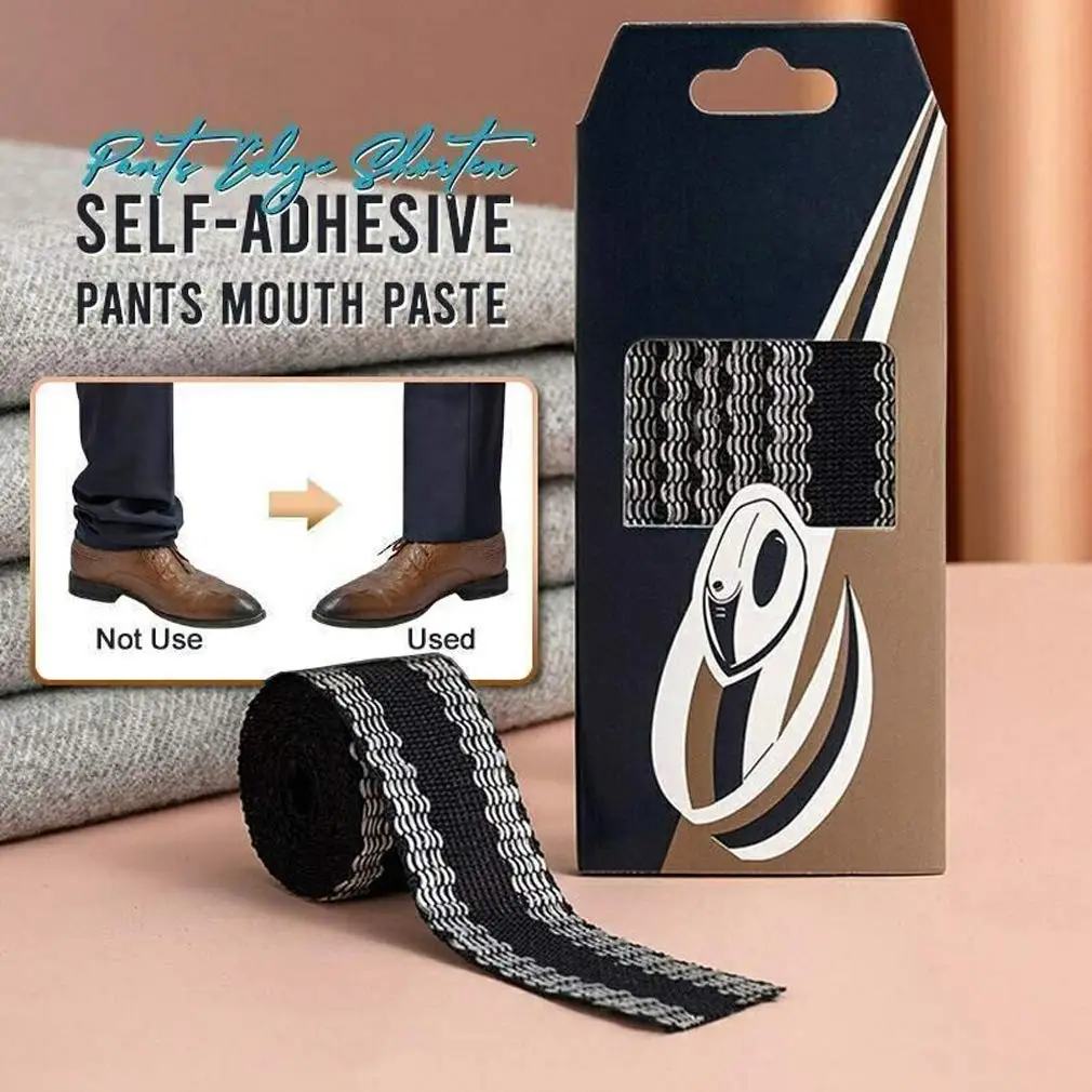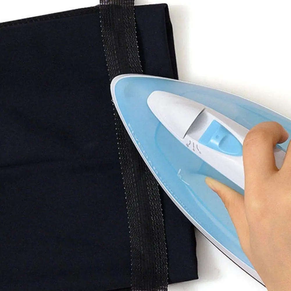 Вы можете отрезать любую длину по желанию, ее можно зафиксировать на штанах, и ее нелегко двигать, а потом прогладить штаны можно плоским.