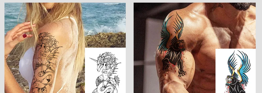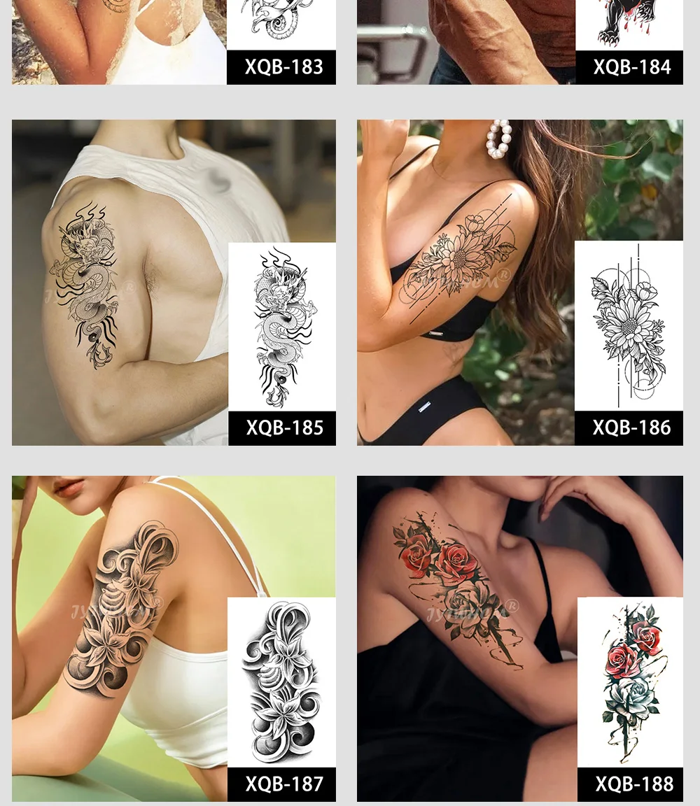 1. Можно использовать для кожи, металлической керамики, стеклянной поверхности. 2. Печатные узоры, цвет яркий и выглядит как настоящая татуировка. 3. Очень хороший выбор в качестве временной татуировки, макияжа тела, а также может скрыть шрам на теле. 4. Легко носить и легко чистить. Технические характеристики: 11,4*21 см Количество: 1 шт. Примечание: Из-за различных настроек монитора и освещения цвет может немного отличаться от реального товара.