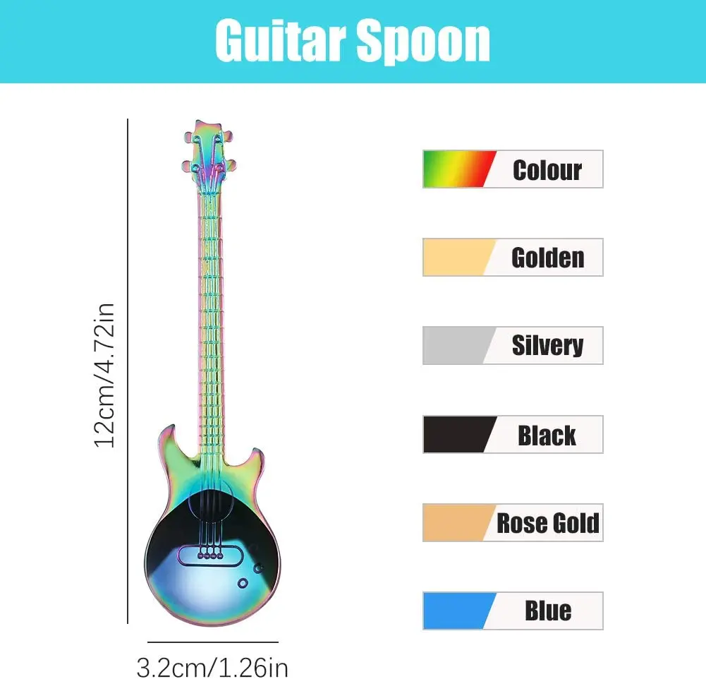 Наши ложки изготовлены из высококачественного пищевого материала. Здоровый, безопасный и прочный Форма мини-гитары, для любителей музыкальной гитары, отличный подарок для любителей музыки и всех, кто любит кофе С портативным и весовым размером светильник, очень удобно хранить или выполнять. Гладкая поверхность дарит вам ощущение комфорта, также очень легко мыть Может служить мешалкой для кофе, ложка для торта, десертная ложка, ложка для мороженого и декоративная домашняя вещь Цвет: серебристый Материал: нержавеющая сталь Размер: 12 см * 3 см
