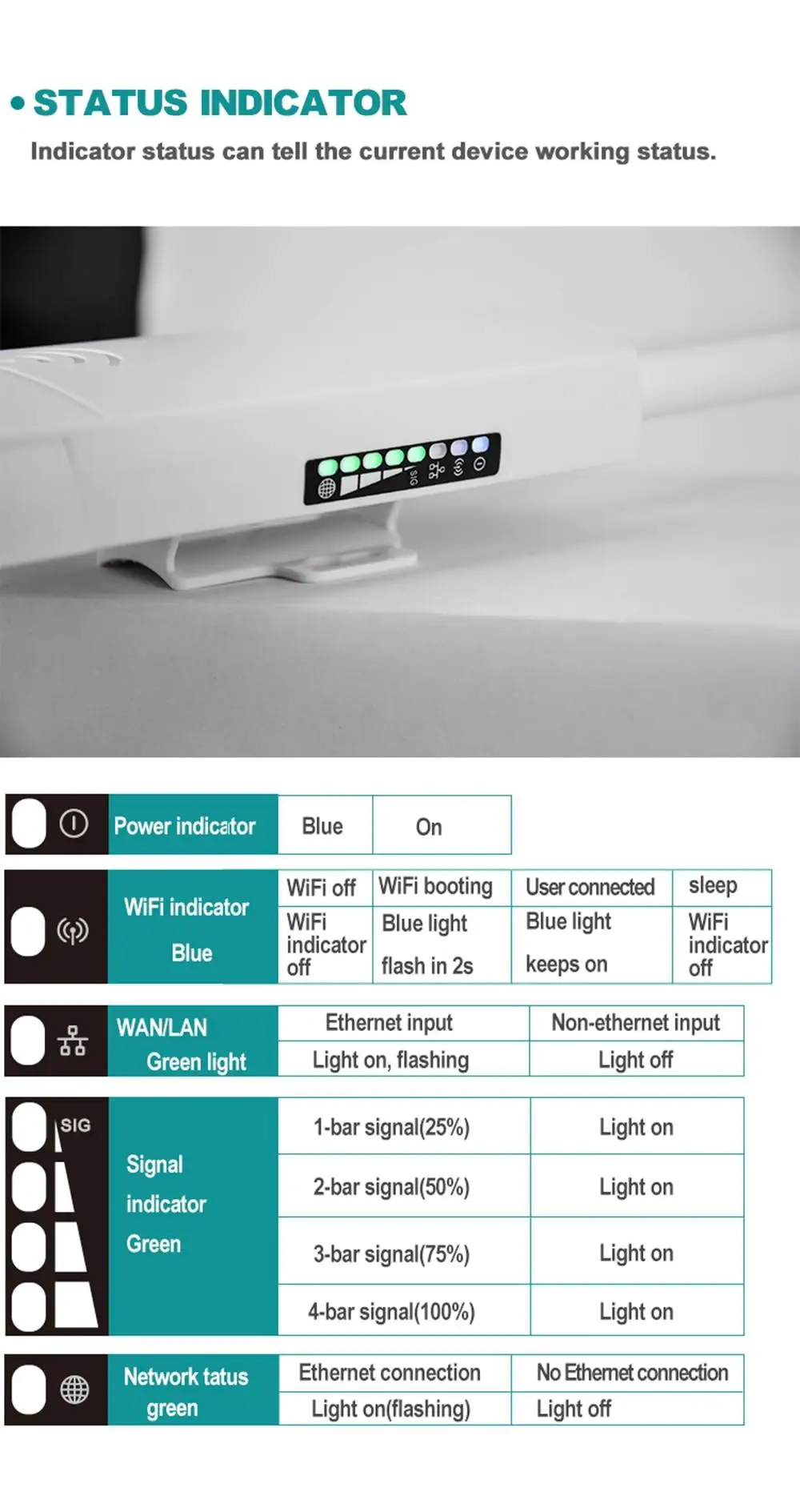 Это Открытый 4G CPE, который предоставляет пользователям высокоскоростной доступ в Интернет 3G/4G. Продукт поддерживает основные Частотные полосы 3G/4G в большинстве стран и операторов в мире.