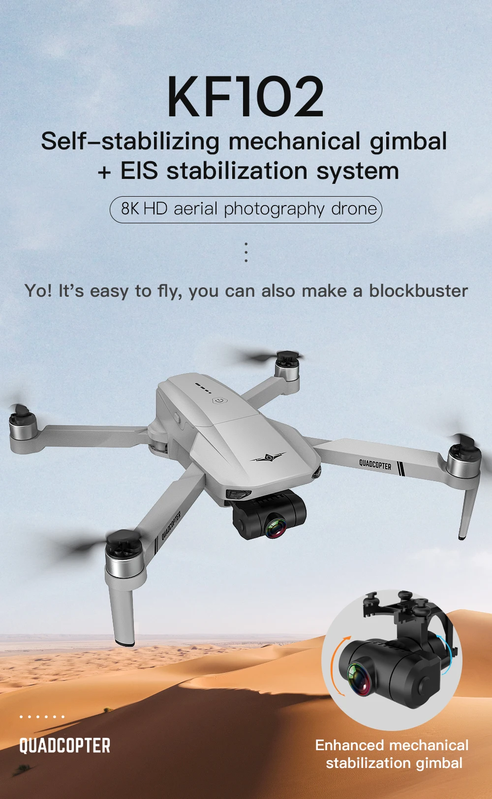 8K pixels, the image quality is delicate and stable. High-definition pixels bring exquisite and rich image quality, making your aerial creation more free and easy to shoot movie-level pictures
