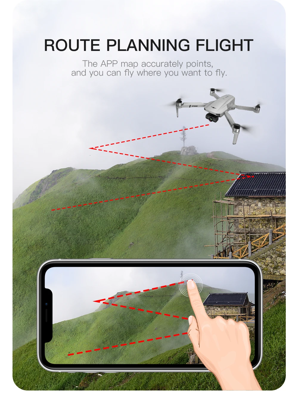 Experience route planning flight without remote control. The APP map accurately points, and you can fly where you want to fly