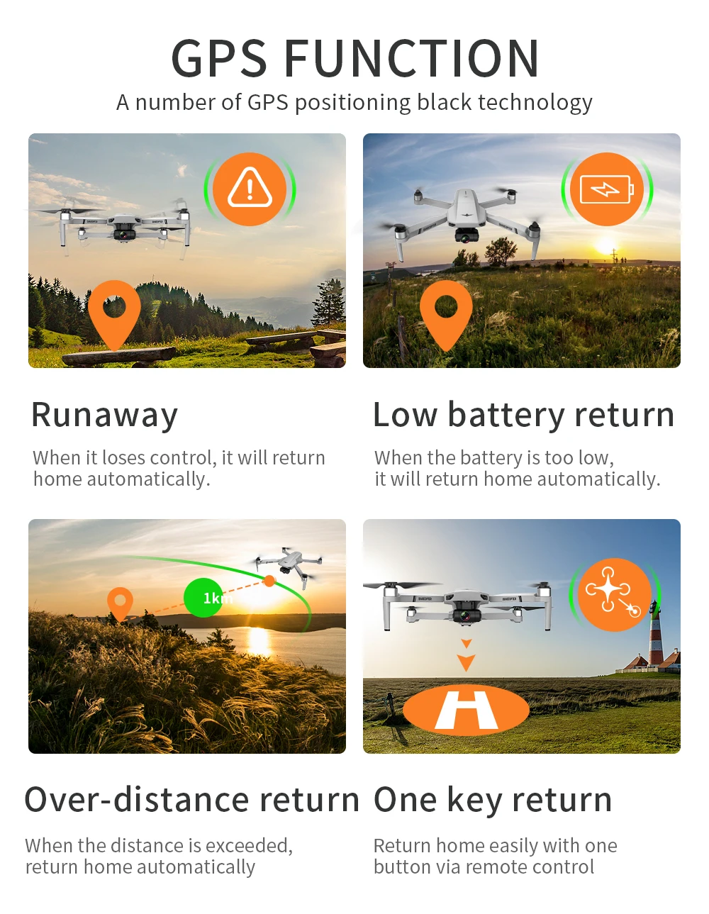 Surrounding points of interest: Take a stunning and wonderful movie with a 360°surrounding flying shooting angle of view.