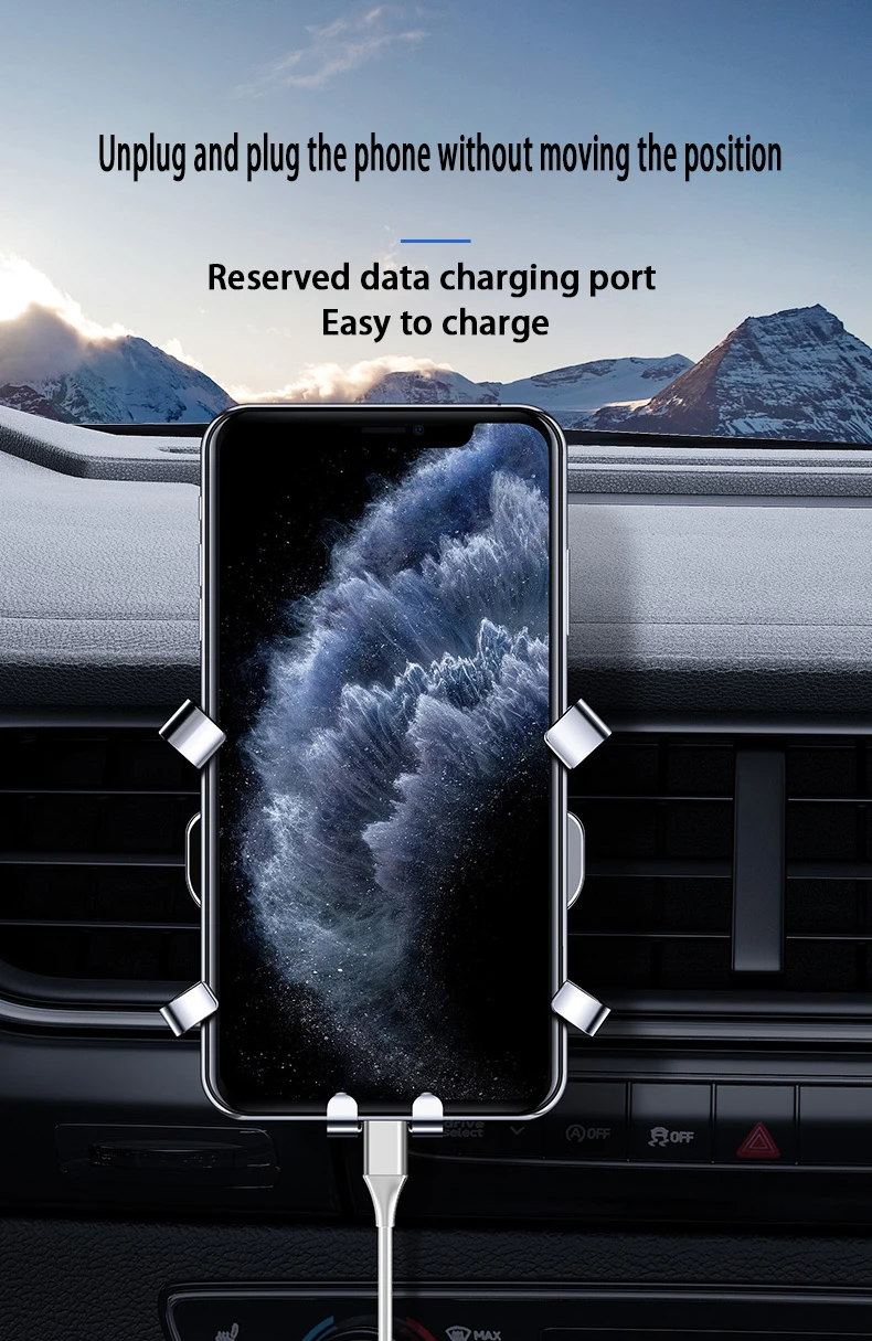 Дизайн: инновационный дизайн, гравитационная связь и треугольная поддержка, автоматически зажимается, когда телефон надевается на держатель, устойчивый и стабильный, отпустите автоматически, когда снимите телефон с держателя, легко и удобно. Прочная и хорошо Защитная: Высококачественная резка из алюминиевого сплава, поверхностное окисление, Для крепления на автомобиле используется эластичный и противоскользящий зажим, плотно удерживающий вентиляционное отверстие, мягкие резинки на вентиляционном отверстии, чтобы не царапать устройства.