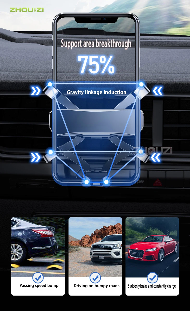 Дизайн: инновационный дизайн, гравитационная связь и треугольная поддержка, автоматически зажимается, когда телефон надевается на держатель, устойчивый и стабильный, отпустите автоматически, когда снимите телефон с держателя, легко и удобно. Прочная и хорошо Защитная: Высококачественная резка из алюминиевого сплава, поверхностное окисление, Для крепления на автомобиле используется эластичный и противоскользящий зажим, плотно удерживающий вентиляционное отверстие, мягкие резинки на вентиляционном отверстии, чтобы не царапать устройства.