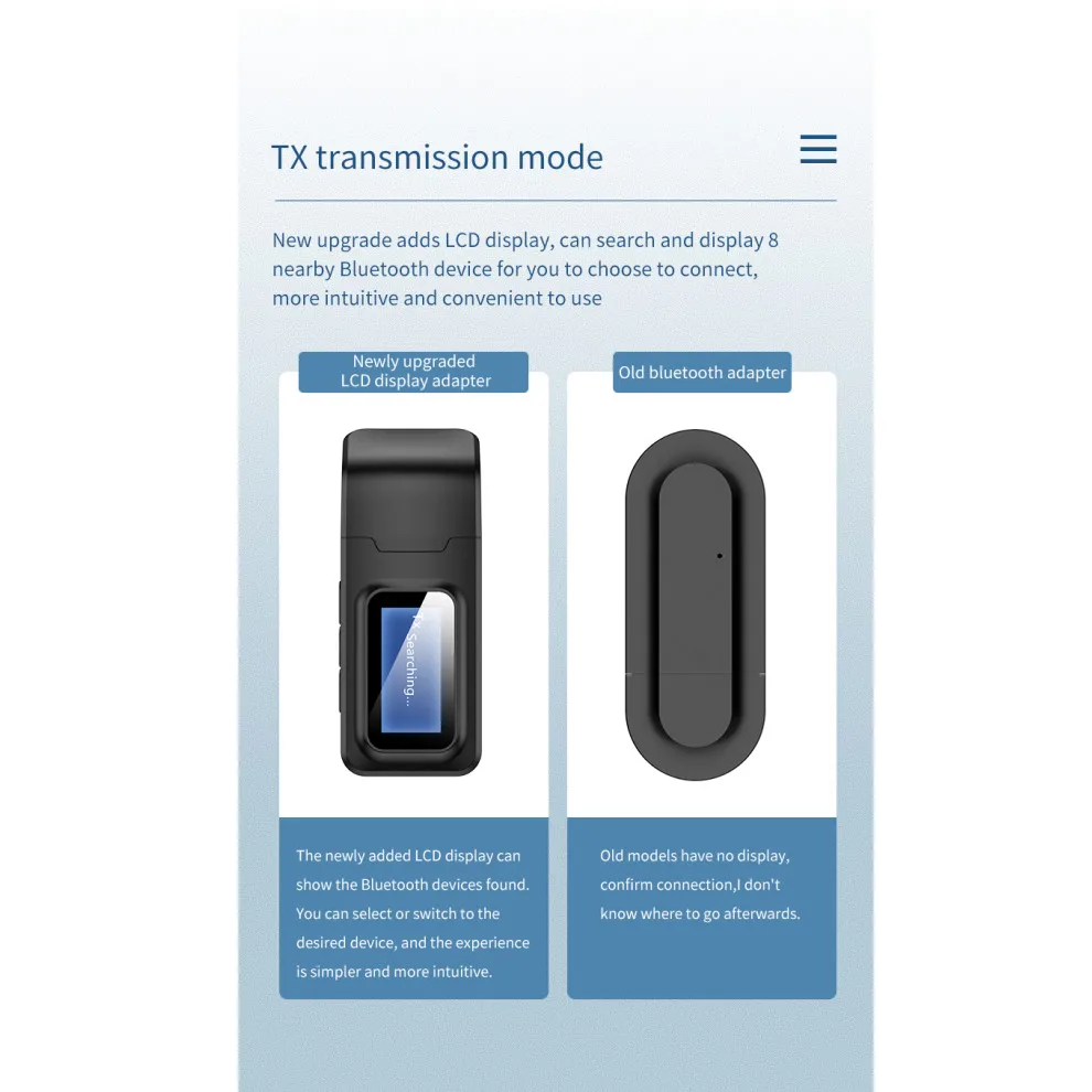 Описание: 1. Новый дизайн: первый bluetooth-приемник с ЖК-дисплеем. Вы можете получить всю информацию о состоянии беспроводной потоковой передачи с простого взгляда на экран. Он показывает состояние подключения Bluetooth. 2.BLUETOOTH 5. 0 Приемник: установлен с Bluetooth 5. 0 чип, VIKEFON Новый беспроводной музыкальный приемник имеет непревзойденную производительность с в 2 раза более быстрой скоростью передачи, более сильной стабильностью подключения и более широким диапазоном сигнала на 10 м, чем более старая версия. 3.BLUETOOTH Совместимость: Этот аудио Bluetooth адаптер Поддержка 3,5 мм с разъемом подачи внешнего сигнала aux, а также совместим со всеми смартфонами, bluetooth аудио устройств (блютус наушники, Bluetooth колонки и многое другое). 4. Режим приемника передатчика: 2в1 дизайн, с помощью этого беспроводного адаптера, вы можете отправлять и получать все аудио свободно и легко. Передатчик позволяет вашему телевизору, av-ресиверу, радио и другим домашним аудиоустройствам передавать музыку в bluetooth-наушники или колонки; приемник позволяет не использовать Bluetooth устройства, такие как домашний стерео или av-ресивер, и передавать музыку по беспроводной сети с вашего мобильного телефона/ПК. 5. Чистый звук: A2DP поддерживает голосовые подсказки, получает высококачественный аудио звук, предлагает вам диапазон работы 30 футов с хорошей производительностью, дает вам хороший опыт во время ответа на телефон или просмотра поздних шоу. Для того, чтобы получить чистый звук, мы рекомендуем не использовать 3,5 мм Bluetooth передатчик-приемник во время зарядки. 6. Беспроводная функция: хотите смотреть футбол/Бейсбол/бокс/Гольф/НБА игра поздно ночью, не разбудив кого-либо? Это отличный выбор для вас. Функция bluetooth-передатчика по беспроводной сети передает аудио в bluetooth-колонки или наушники с вашего телевизора или более старых мультимедийных устройств, таких как портативные CD-плееры, которые не имеют встроенного Bluetooth. Особенности: 2 в 1 bluetooth-передатчик и приемник, как bluetooth-аудио передатчик, он специально разработан для аудиоустройств (например, MP3, MP4, TV и PC и т. д.) без функции Bluetooth. Bluetooth передатчик можно подключать к аудиоустройствам без функции Bluetooth с помощью прилагаемого 3,5 мм аудио разъем, изменение этих аудио-устройств в аудио-устройства с поддержкой Bluetooth, И позволяет работать с bluetooth-гарнитурой и динамиком; В качестве bluetooth-аудиоприемника Он специально разработан для автомобильной стереосистемы s и домашней аудиосистемы. Он может изменить традиционные автомобильные стереосистемы и домашние аудиосистемы на bluetooth-совместимые и легко соединяется с bluetooth-совместимыми смартфонами, ноутбуками, планшетами и т. д. С помощью этого продукта вы можете наслаждаться музыкой с вашего телефона, ноутбука, планшета без хлопот кабелей. Спецификация: Профиль Bluetooth: V5.0 EDR,A2DP,HSP,AVRCP Bluetooth: V5.0 Расстояние передачи: 10 м/33 фута Зарядка: Micro USB 5V/0.5A Аудио Порты и разъёмы: 3,5 мм Основной Размер товара: 62*25*13,3 мм Посылка включает в себя: 1 X bluetooth-передатчик и приемник 1X3,5 мм аудио кабель 1 X Руководство пользователя