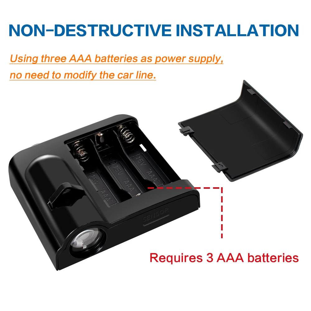 Описание товара Характеристики: Напряжение: 12 В Тип светодиодный: светодиодный чип Потребляемая мощность: 5 Вт Материал: АБС-пластик Устанавливается просто, хорошо выглядит и полезна Низкое энергопотребление Питание: использование 3 шт. аккумуляторов AAA (аккумуляторы в комплект не входят) Посылка включает в себя: 2 шт. логотипа дверных огней (2 шт. для 2 дверей)