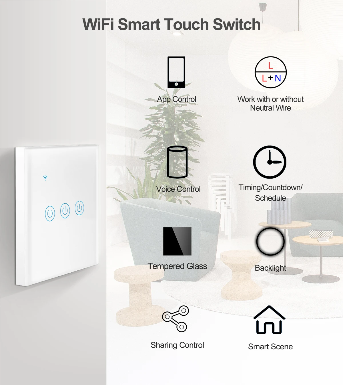 Tuya Smart Wifi сенсорный светильник Переключатель ЕС 220V, работа без каких-либо нейтральный провод или с нейронной силового настенный выключатель 1/2/3/4 Gang Совместимость с Alexa Google Home