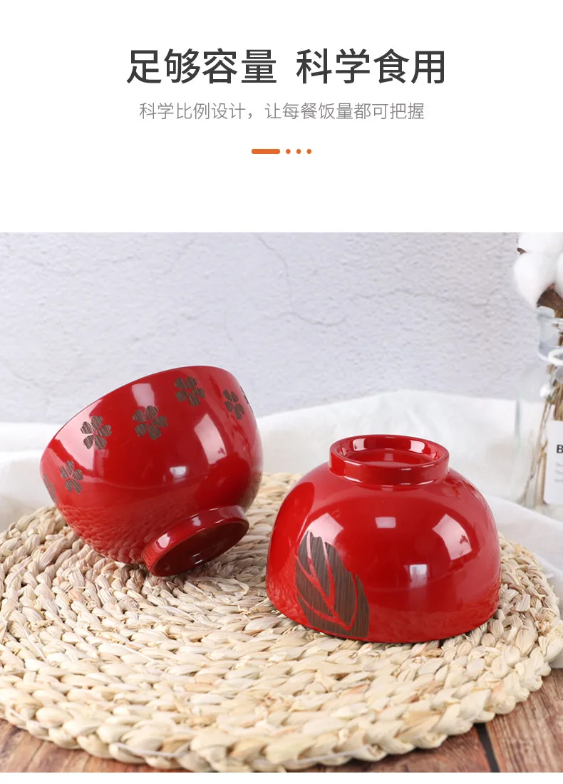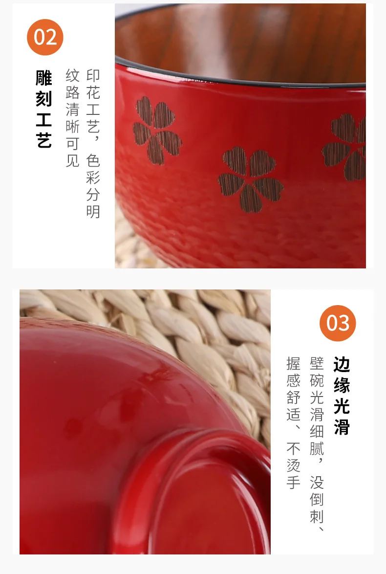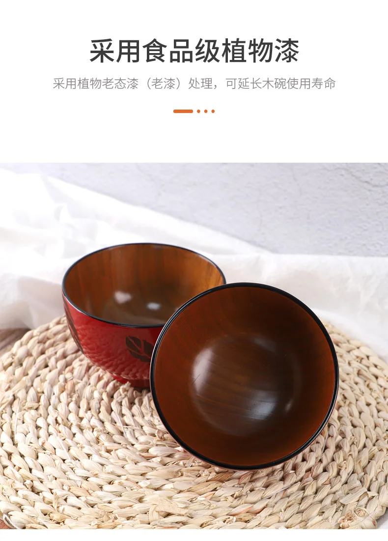 Японский стиль красная деревянная чаша Jujube натуральные чаши для риса и супа Вишневый цветок лист печать деревянная посуда кухонная посуда ремесла