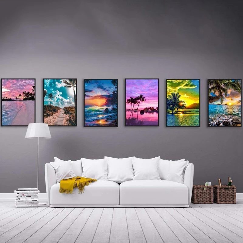 6 Pack 5D Diamond Painting By Numbers Diamond Art Dotz Kits Full Drill for Adults Kids Beach Sea Holiday Palm Tree