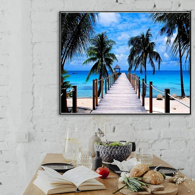 Nature Diamond Painting Kits for Adults,Crystal Diamonds Art, Summer Beach Picture DIY Art Craft for Home Decor
