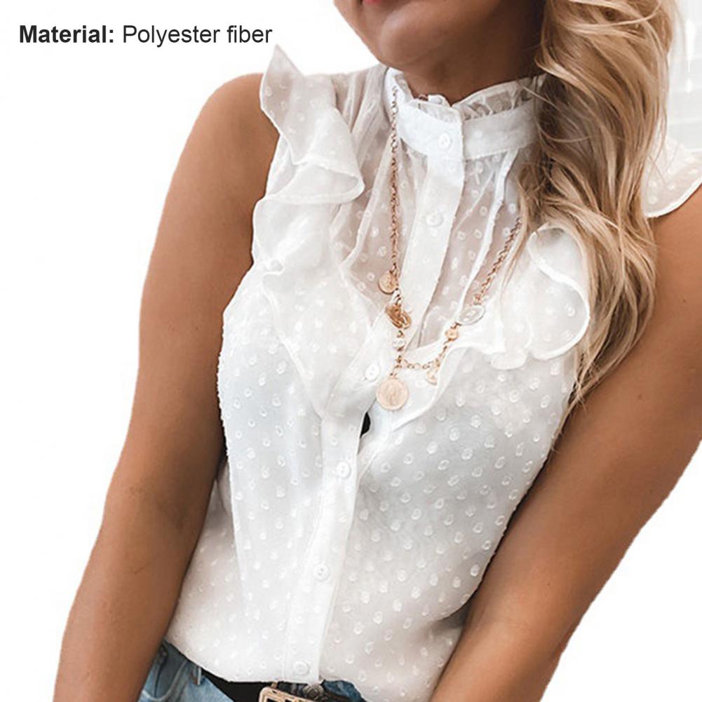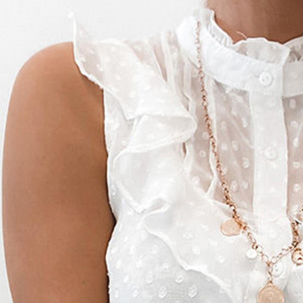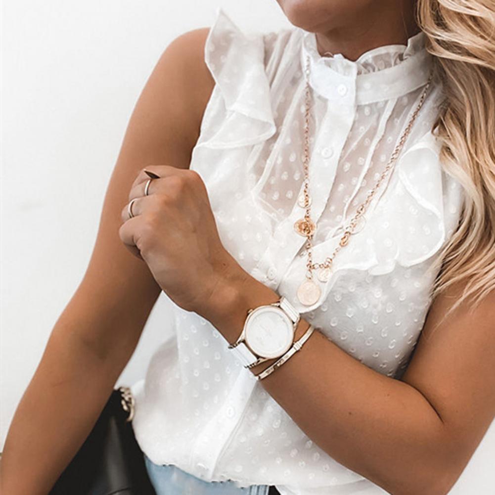 Женская блузка с рюшами, элегантная Однотонная рубашка с круглым вырезом, лето 2021, женские блузы 2XL, Новые повседневные топы без рукавов на пуговицах, рубашка D30