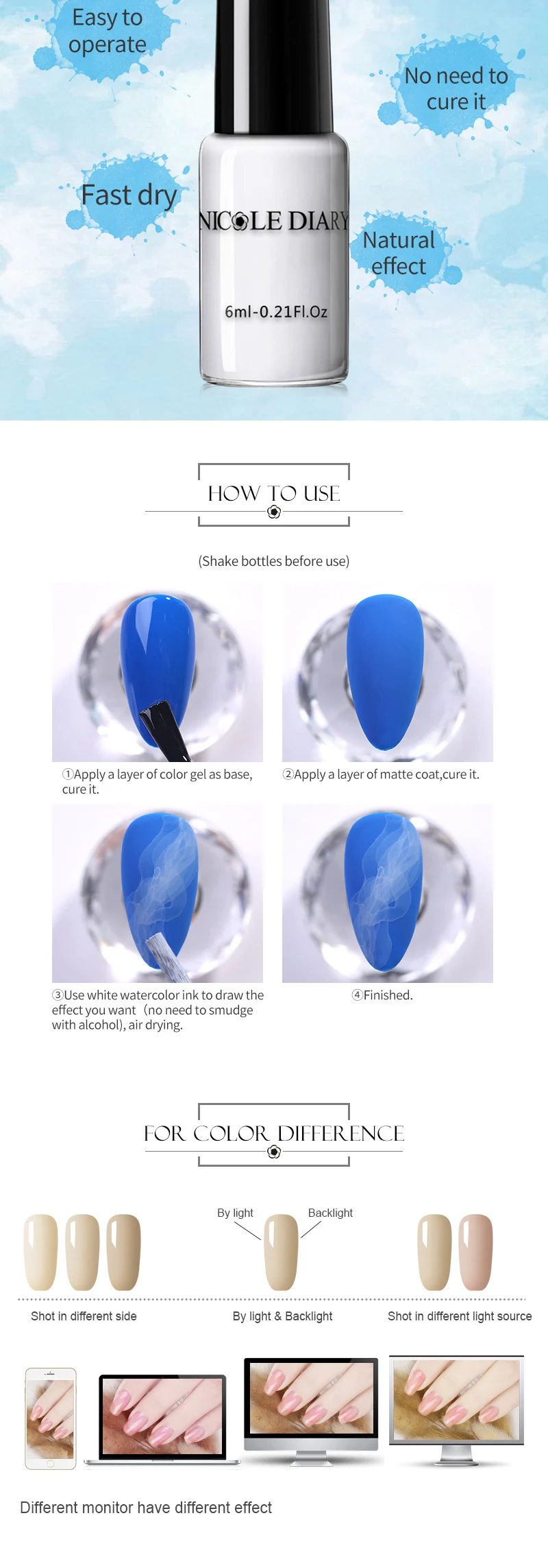 Название: белые акварельные чернила для ногтей