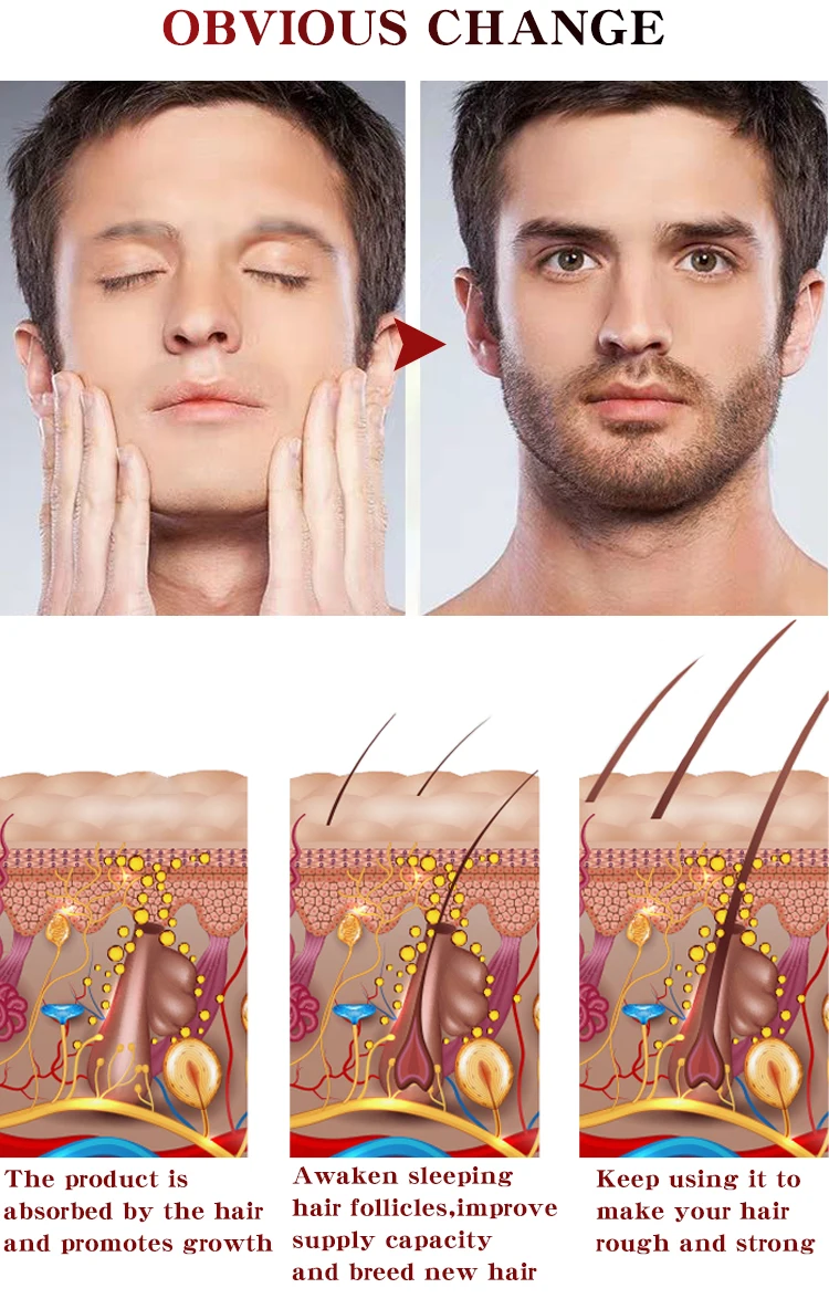 1.The product is absorbed by the hair and promotes growth 2.Awaken sleeping hair follicles,improve supply capacity and breed new hair 3.Keep using it to make your hair rough and strong