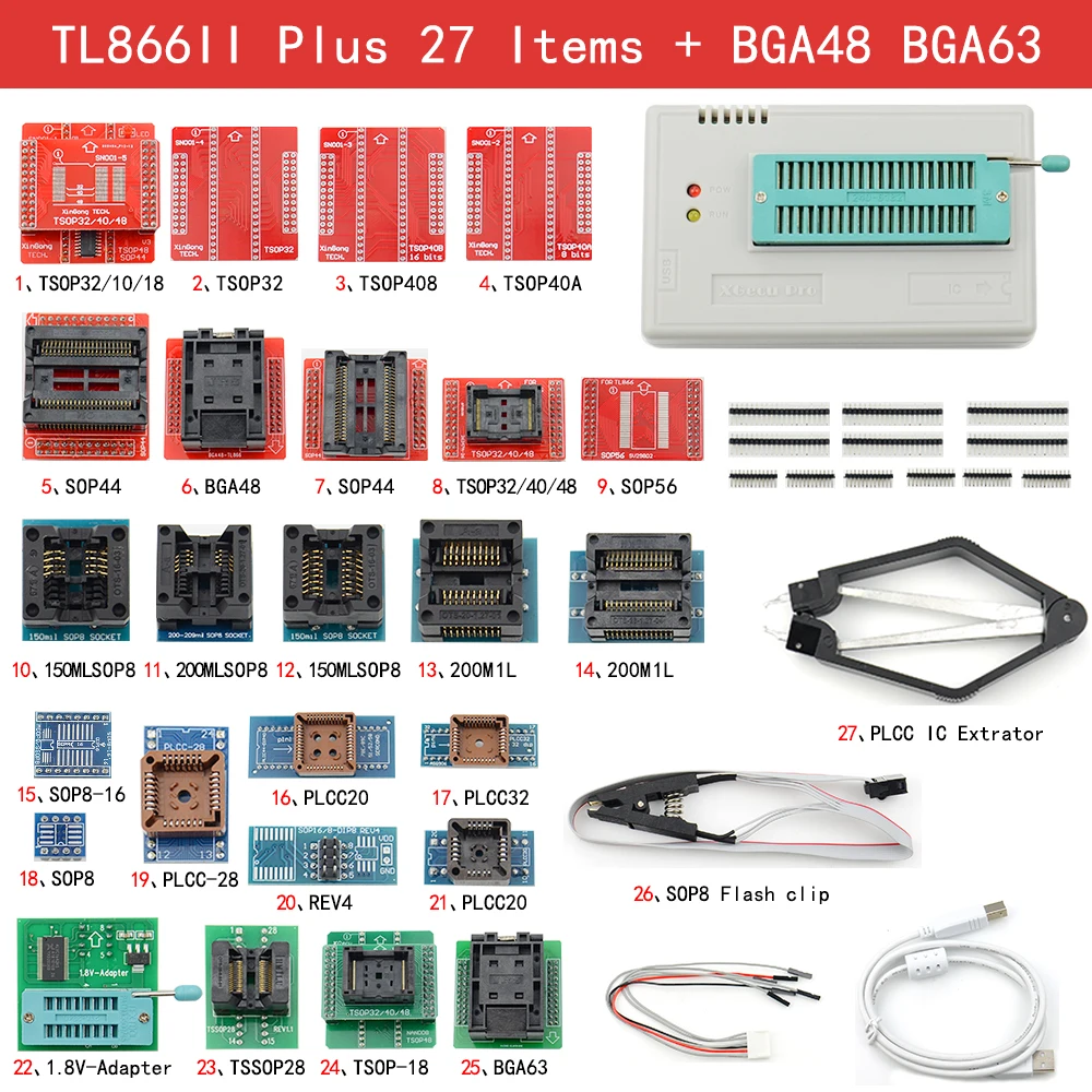 Оба программиста работают с настоящими адаптерами TL866 для устройств до 48 контактов.