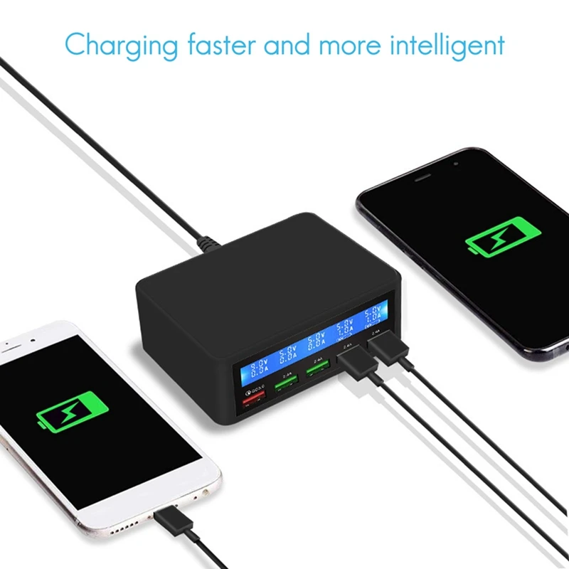 3. Интуитивно ЖК-дисплей: с динамическим дисплеем для отображения состояния зарядки каждого порта одновременно, идеальная многопортовая зарядная usb-станция для ваших мобильных телефонов, часов, гарнитур Bluetooth, динамиков, банков питания, электронных устройств, MP3/MP4 плееры, PSP, GPS с USB-кабелем для зарядки.