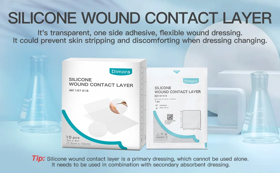 Силиконовый контактный слой для ран может использоваться с вторичной абсорбирующей повязкой, предназначенной для широкого спектра РАН, таких как кожные слезы, истирание кожи, волдыри, язва диабетической стопы, язва давления, венозная болезнь ног, артериальная язва, ожоги первой и второй степени, пересадки частичной и полной толщины, буллоза эпидермолиза, Хирургических ран и травматических ран.