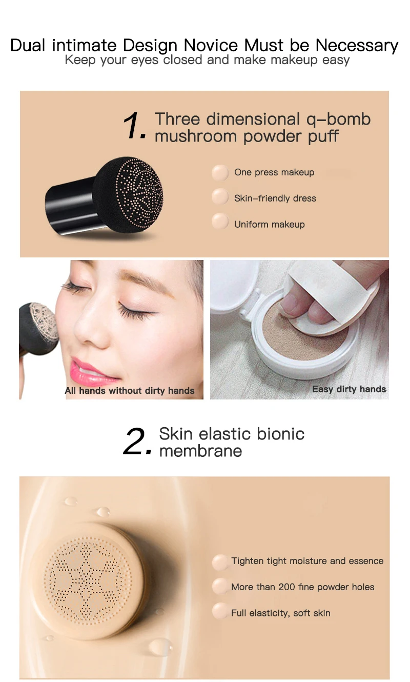 Легко наносится макияж-портативная воздушная подушка CC крем retouches для лица пятна и увеличенные поры, со специально разработанной благоприятной для кожи губкой в форме гриба для равномерного и быстрого нанесения.