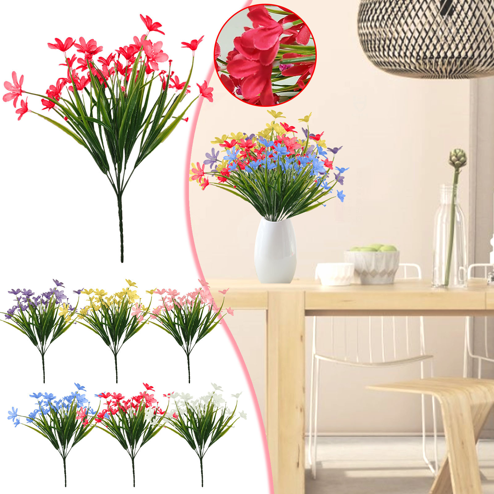 1. Цветочная головка этого продукта является обновленной версией ОбычныйПластиковая Цветочная головка, которая стремится сделать наружное украшение более стабильным и действительно прочным!, В цветочной головке пластикового поддельного цветка используется шелковая ткань с шелковым экраном, Цветочная головка имеет четкие и красивые линии, более яркие цвета и лучшее качество цвета. Откажитесь от традиционных пластиковых цветочных головок, которые имеют один цвет и быстро выцветают, вы можете сохранять свежесть и красоту из года в год.