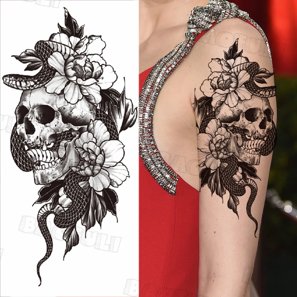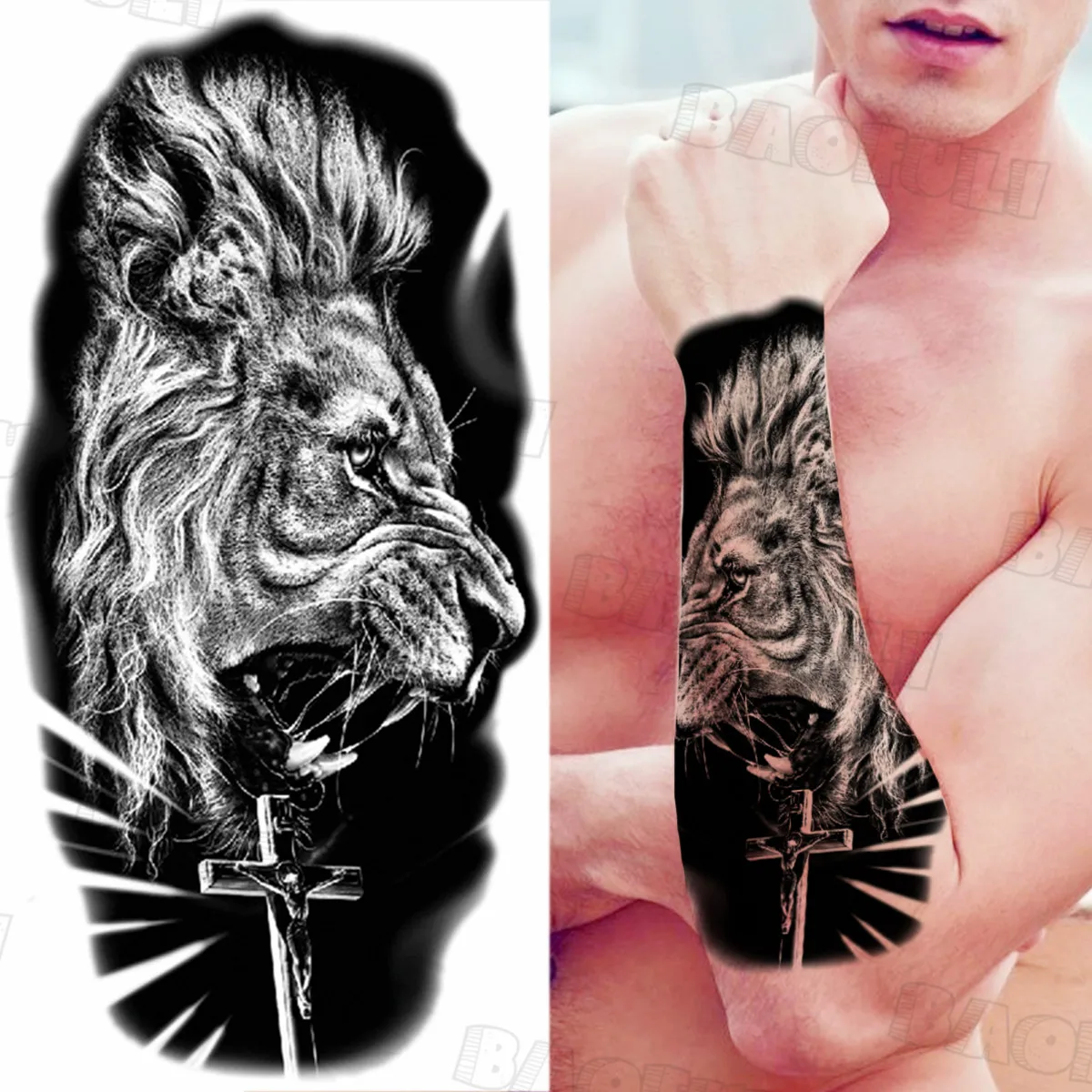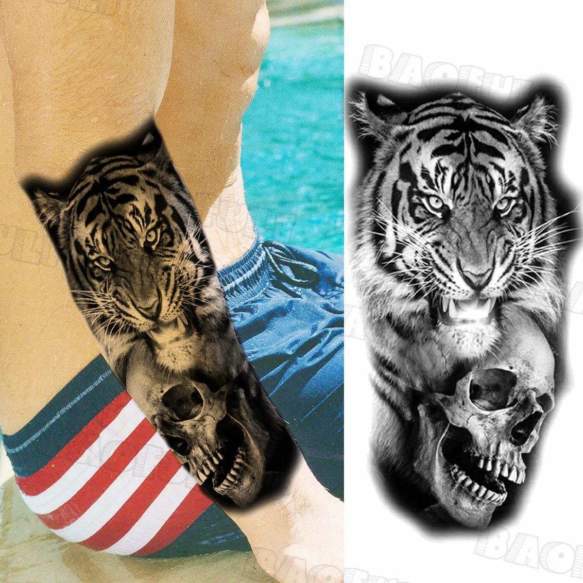 Временные татуировки с черным Тигром и черепом для женщин и взрослых, Лев, покер, лес, Реалистичная искусственная тату-наклейка, боди-арт, татуировка с половиной рукава