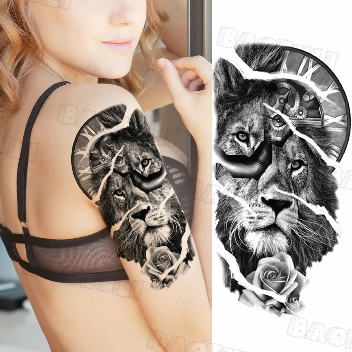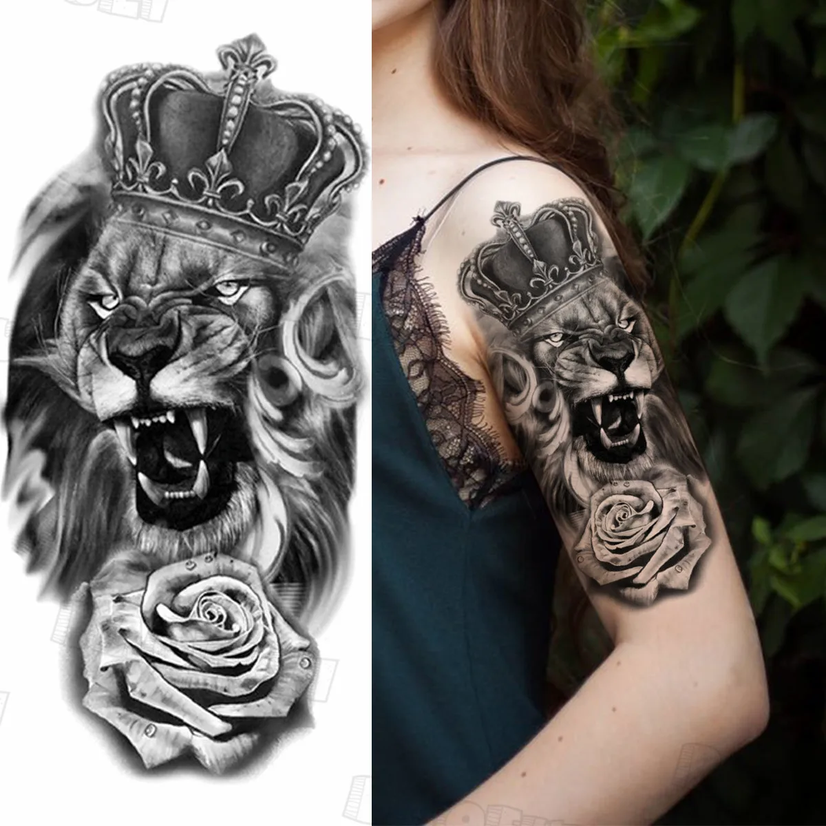 Временные татуировки с розовым голубем для женщин, взрослых, Лев, змея, корона, ювелирные изделия, поддельные татуировки, наклейки, водонепроницаемые, боди-арт, тату, наклейка